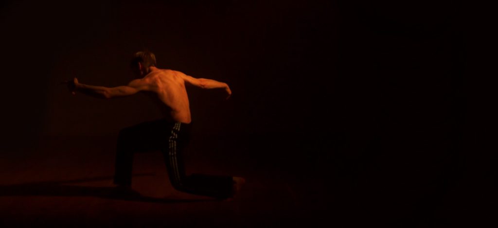 In the opening sequence, this simplicity is reflected in the movement. What starts with a hunt for gathering his supplies in life flows into light, expansive motions filling the space, breath-driven and fluid. The dancer moves with ease, embodying the natural rhythm of his world around him. His gestures are open, unhurried, and weightless, mirroring the harmony between his body and the environment. The breath leads the movement, creating a sense of boundless freedom.